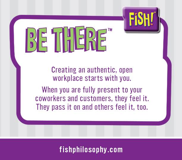 The third concept I will discuss from FISH! Philosophy is “be present.” It goes beyond the idea of physically being present when talking to a friend, customer, coworker, etc. It is about giving your full, undivided, attention – actively listening. This seems so simple, but I have found it takes a great deal of effort to do it – every time. When thinking about this blog post I came up with a list of situations I have found where being present is most important.